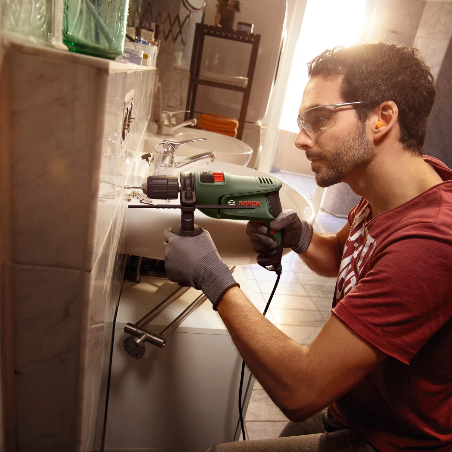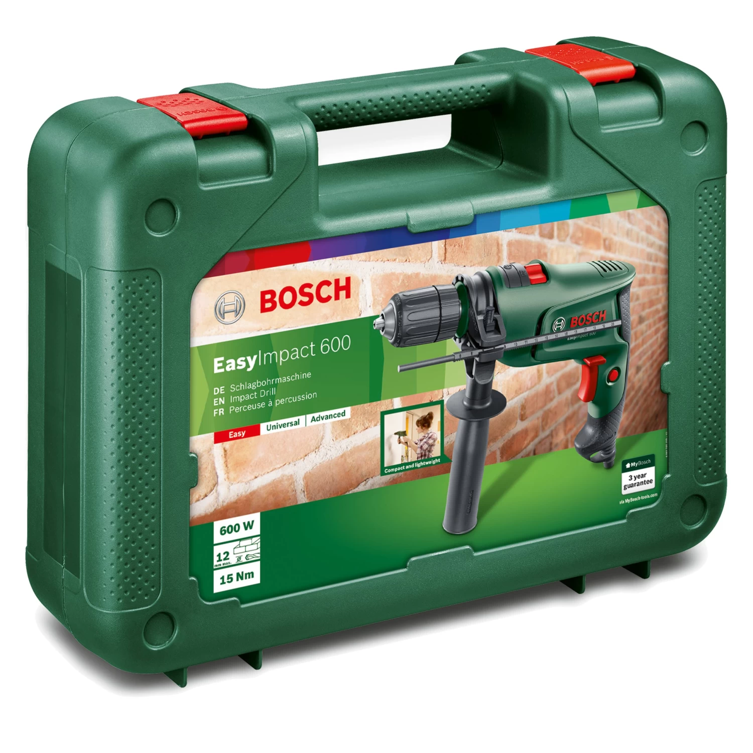 De Bosch klopboormachine EasyImpact 600 is een krachtige en makkelijk controleerbare klopboormachine. De klopboormachine is licht en compact en wordt met dieptestop en extra handgreep geleverd. Hierdoor boor je altijd tot de gewenste diepte en is de machine gemakkelijk te hanteren. De klopboormachine is geschikt om te boren in beton tot maximaal 10 mm, staal tot maximaal 8 mm en hout tot maximaal 25 mm. Dit is genoeg voor de gangbare klussen in en rondom het huis. Daarnaast heeft de Bosch klopboormachine EasyImpact 600 een slagkracht van 33.000 slagen per minuut.