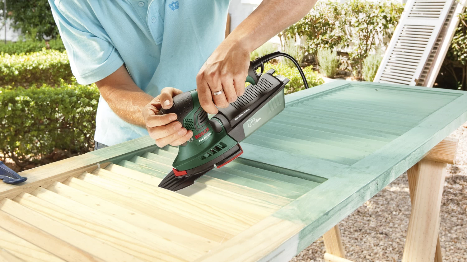 De Bosch Multi schuurmachine PSM 200 AES is door zijn verwisselbare schuurplateau veelzijdig inzetbaar als vlakschuurmachine en Multi schuurmachine. Het rechthoekige schuurplateau is geschikt voor het schuren van grote oppervlakken en het driehoekige schuurplateau is geschikt voor het schuren van moeilijk bereikbare plaatsen en hoeken. De schuurmachine heeft een vermogen van 200 watt en behaalt een maximum aantal schuurbewegingen van 26.000 per minuut. De micro stoffiltersysteem zorgt voor een optimale stofopvang en een schonere werkomgeving. De schuurmachine is voorzien van een klithechting voor het eenvoudig bevestigen en wisselen van schuurbladen. De Bosch Multi schuurmachine PSM 200 AES wordt geleverd inclusief een rechthoekig en een driehoekig schuurblad.