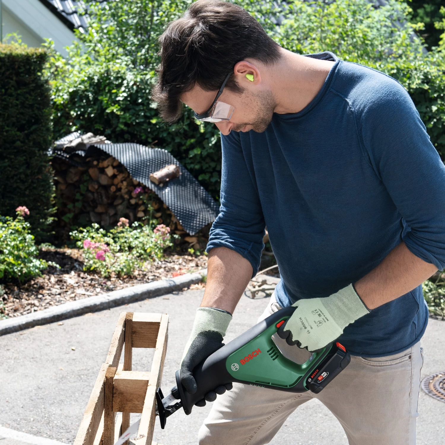 De Bosch reciprozaag AdvancedRecip 18 volt Li is een fijn hanteerbare reciprozaag waarmee je nauwkeurig kan zagen. Door het gebalanceerde ontwerp heb je minder last van trillingen waardoor je de zaag stabiel kan gebruiken. Door het fijne design en de softrgip is de zaag comfortabel vast te houden en kan je meerdere posities hanteren. Doormiddel van het SDS-systeem wissel je snel en eenvoudig van zaagblad zonder gereedschap. De reciprozaag is te gebruiken voor het weghalen van bijv. takken, balken of vlak afzagen bij muren. De zaag kan ook diep zagen in metaal, staal, hout, aluminium en kunststof. Zo heeft de zaag bij hout een zaagdikte van 100mm. De zaag werkt op een accu van Lithium-Ion van 18V. Door de Lithium-Ion heeft de accu geen last van geheugenverlies of zelfontlading. De zaag wordt zonder accu geleverd omdat het gereedschap onderdeel is van het Bosch Power for All accuplatform. Je hebt 1 sterke accu voor al jouw klussen. Kortom, de Bosch reciprozaag AdvancedRecip 18 volt Li is de ideale keus voor het diep zagen of snoeien van diverse materialen.
