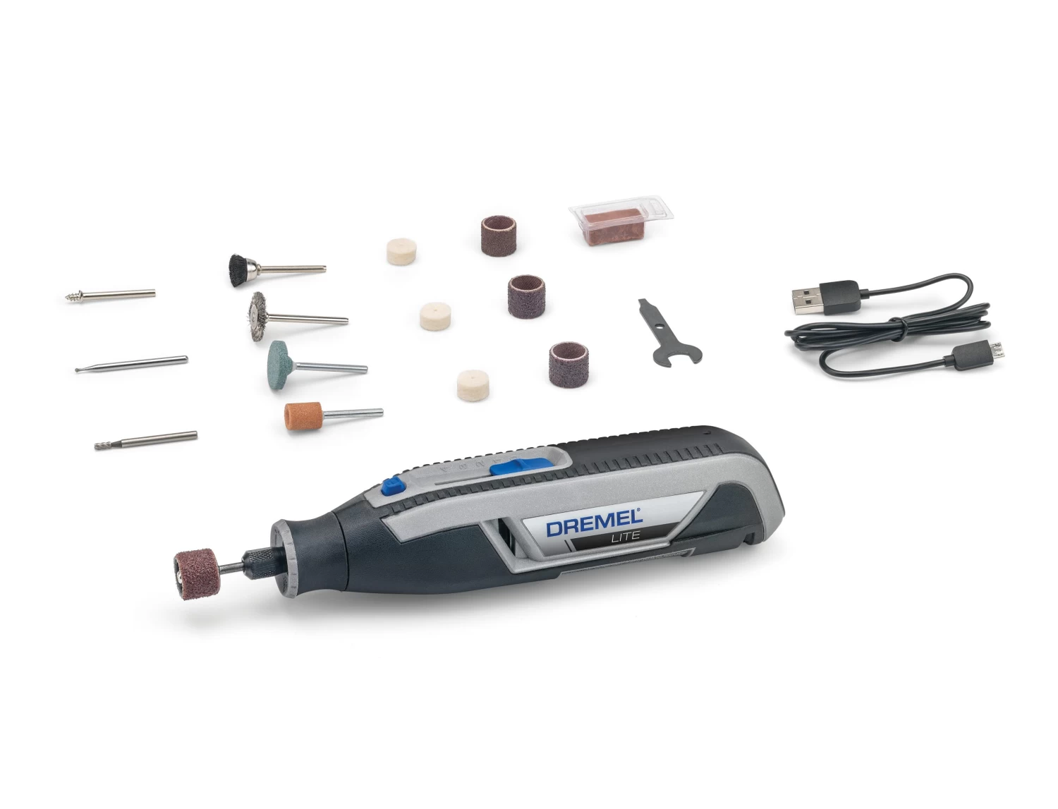 Ontdek de Dremel Lite. Deze compacte, snoerloze multitool is je beste vriend voor alle gedetailleerde snelle en lichte klussen en reparaties in- en om het huis. Je kan er zelfs ook creatief mee aan de slag. De Dremel Lite is het nieuwe instapmodel binnen de categorie snoerloze multitools en vervangt de Dremel 7750. Dankzij de geïntegreerde 3,6 V Li-Ion accu is de Lite een compacte en lichte multitool en is hij daardoor ook erg toegankelijk en gemakkelijk in gebruik; de tool kan namelijk aangestuurd worden met slechts één knop en kan gemakkelijk en overal opgeladen worden met een USB kabel. Uiteraard is de Dremel Lite te gebruiken met alle Dremel accessoires en hulpstukken wat de tool nog veelzijdiger maakt. De Dremel Lite wordt geleverd met een handige quick start guide en een gevarieerde 15-delige accessoireset zodat je snel aan de slag kan. Kortom, een betaalbare multitool van een vertrouwd merk!