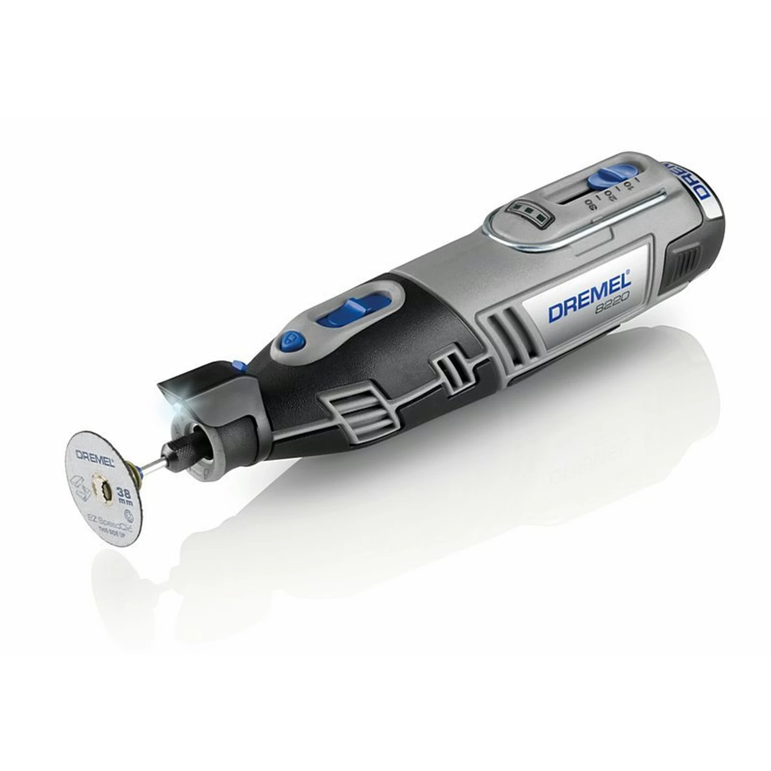 De Dremel Multitool 8220 JF is voorzien van 45 accessoires die kunnen graveren, frezen, snijden, schuren, slijpen, polijsten en snijden. De Dremel Multitool is voorzien van een Led-lampje waardoor je door kan werken bij slecht licht. Het komt met een accu die in slechts een uurtje helemaal is opgeladen waardoor je snel weer door kan. De accu is trouwens verwisselbaar. De voltage is 12 volt met een toerental van 3000.0 tpm. De multitool komt in een lichte koffer van aluminium met alle accessoires erin. De accessoires zijn bij iedere klus te gebruiken. Het gereedschap heeft een handige kop die gemakkelijk verwisselbaar is. Het komt nog met 2 hulpstukken wat het klussen makkelijker maakt. De Dremel Multitool is op veel materialen te gebruiken waaronder kunststof, metaal en hout. Kortom, voor iedere klus is de Dremel Multitool 8220 JF altijd handig.