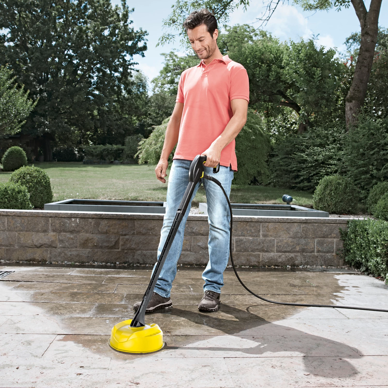 De hogedrukreiniger is uitgerust met een spuitpistool, hogedrukslang van 4 meter, één spuitlans, vuilfrees met roterende puntstraal om hardnekkig vuil snel te verwijderen en waterfilter om de pomp te beschermen tegen vuildeeltjes. Met de extra Home Kit inclusief terrasreiniger T 150 en 500 ml Patio & Deck reinigingsmiddel maakt je het terras rondom het huis schoon.