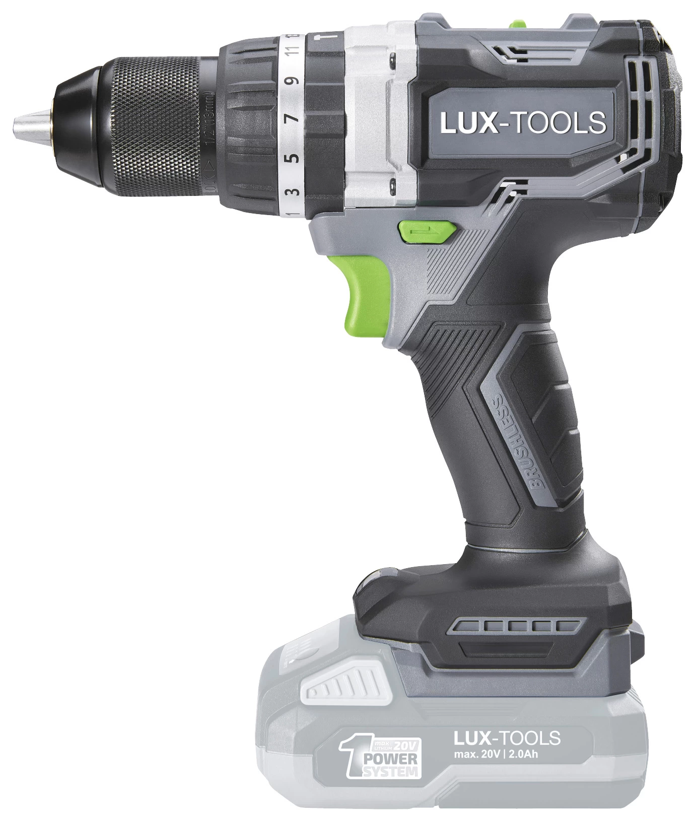 De LUX accu-klopboormachine (zonder accu) is een borstelloze accu-klopboormachine met klopboorfunctie. De klopboormachine maakt gebruik van de uitwisselbare accu’s van het LUX 20V accu platform. Hierdoor kan je dezelfde accu gebruiken van alle LUX 20V (tuin)machines. Deze boormachine heeft een maximaal koppel van 60 Nm, dit maakt de machine erg krachtig en geschikt voor alle schroef- en boorklussen. Met de klopfunctie kan deze klopboormachine ook boren in baksteen en metselwerk. De boormachine heeft 23+2 koppelstanden zodat je altijd de juiste stand kan instellen voor de klus. Dankzij de softgrip en de LED-werklamp is de machine ook prettig om te gebruiken. De borstelloze motor is sneller, krachtiger en heeft een 10 x langere levensduur dan een vergelijkbare motor met borstels.