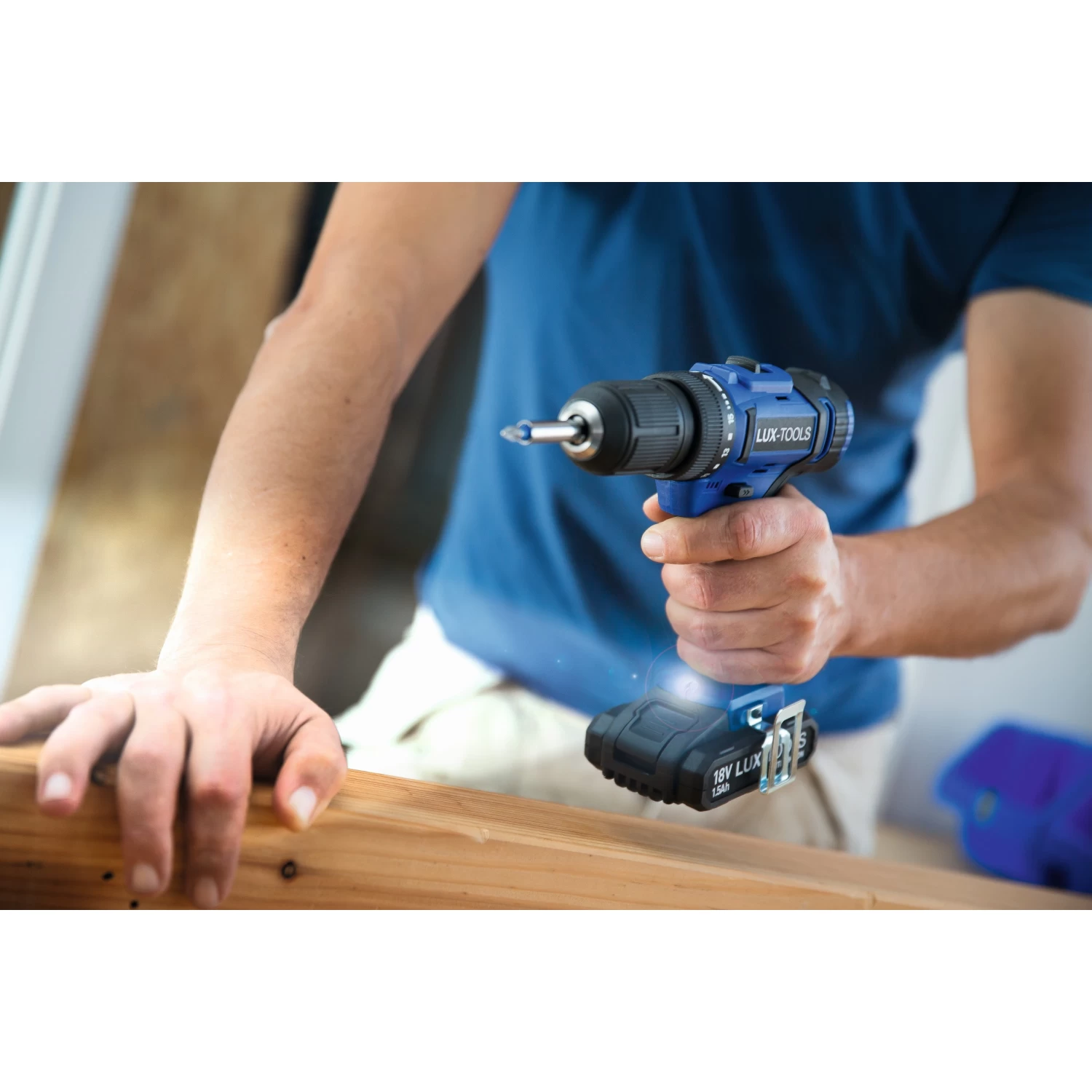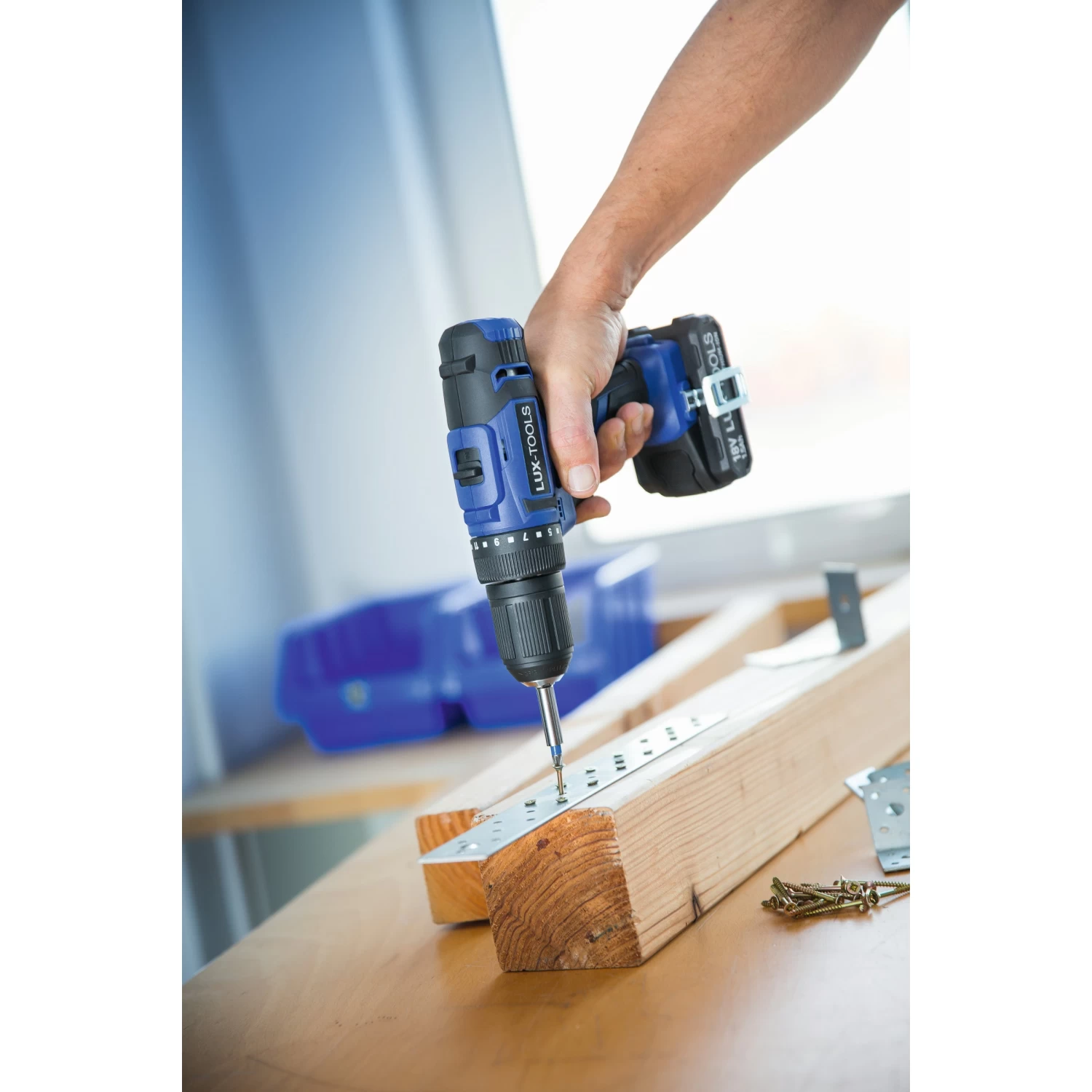 De LUX accu boormachine 18V is een veelzijdige accu schroefboormachine die tot 1.450 t.p.m. maakt. Het is een kleine compacte machine met veel kracht. De accu schroefboormachine heeft een maximale koppel van 30 Nm waardoor er optimaal kan worden geboord en geschroefd in ieder materiaal. Door de ingebouwde LED-verlichting waardoor je werkplek altijd goed te zien is. De zachte handgreep zorgt ervoor dat de machine prettig te hanteren is en je een stevige grip hebt tijdens het werk. De LUX accu boormachine 20V wordt geleverd in koffer met 60 minuten snellader. (Dit item is geen onderdeel van het accuplatform)