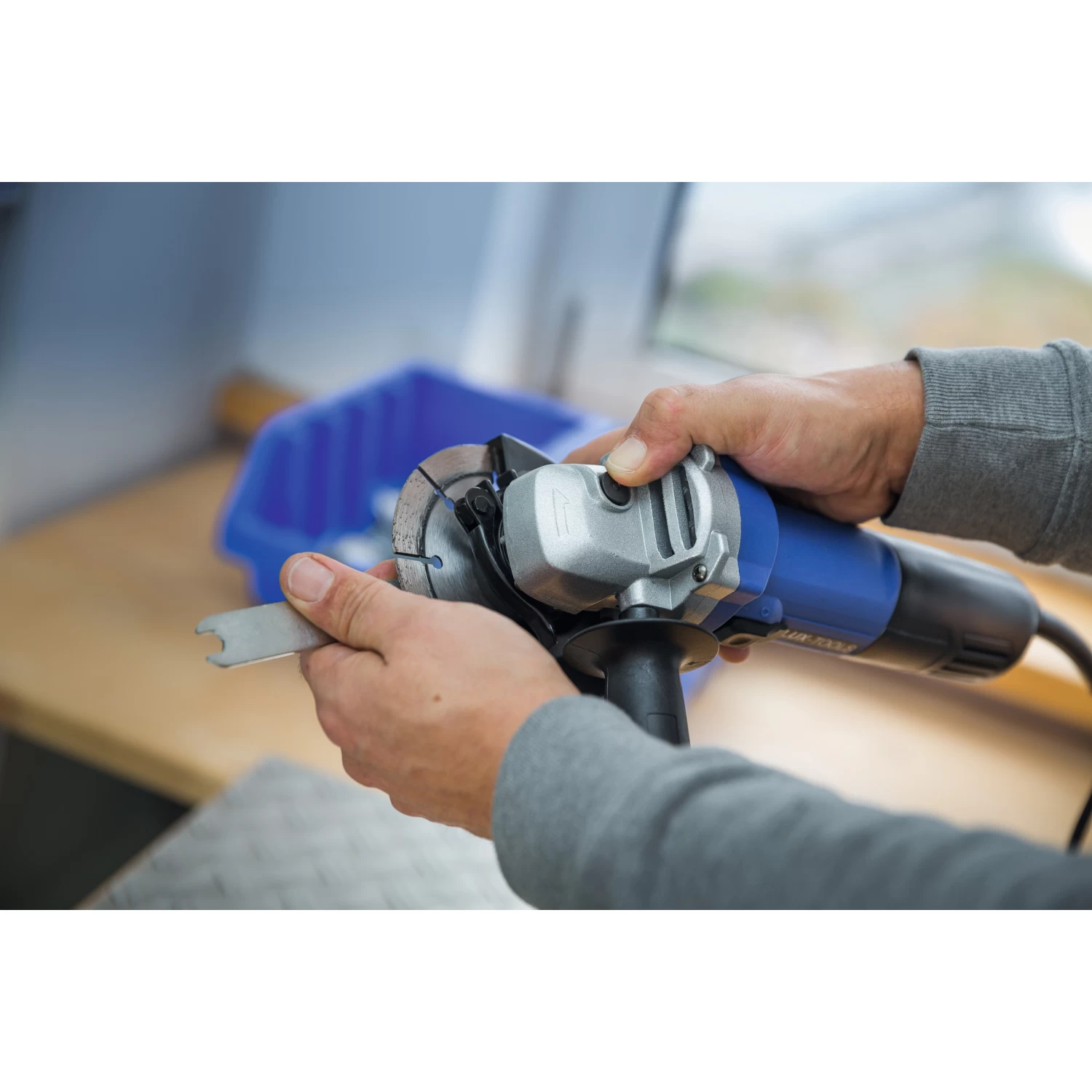 De LUX haakse slijper 750W voor het slijpen van hout, metaal en aluminium. De haakse slijper heeft een maximaal vermogen van 750 watt en maximaal aantal toeren van 11000 per minuut. De machine is geschikt voor een slijpschijf met een maximale doorsnede van 115 millimeter. Hierdoor is deze haakse slijper geschikt voor de meest gangbare klussen en is hiermee ideaal voor de doe het zelver.