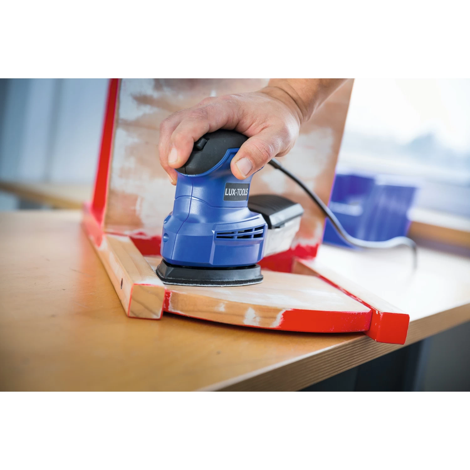 De LUX Handpalmschuurmachine 135W is ideaal voor het schuren in moeilijk bereikbare randen en hoeken. Met een vermogen van 135 wat kan de schuurmachine vele schuurklussen aan. De stofopvangbank zorgt dat de werkomgeving schoon blijft. De LUX handpalmschuurmachine 135W heeft een snelheid van 12.000 s.p.m. en wordt geleverd met diverse accessoires. Het schuuroppervlak is 140 x 80mm.