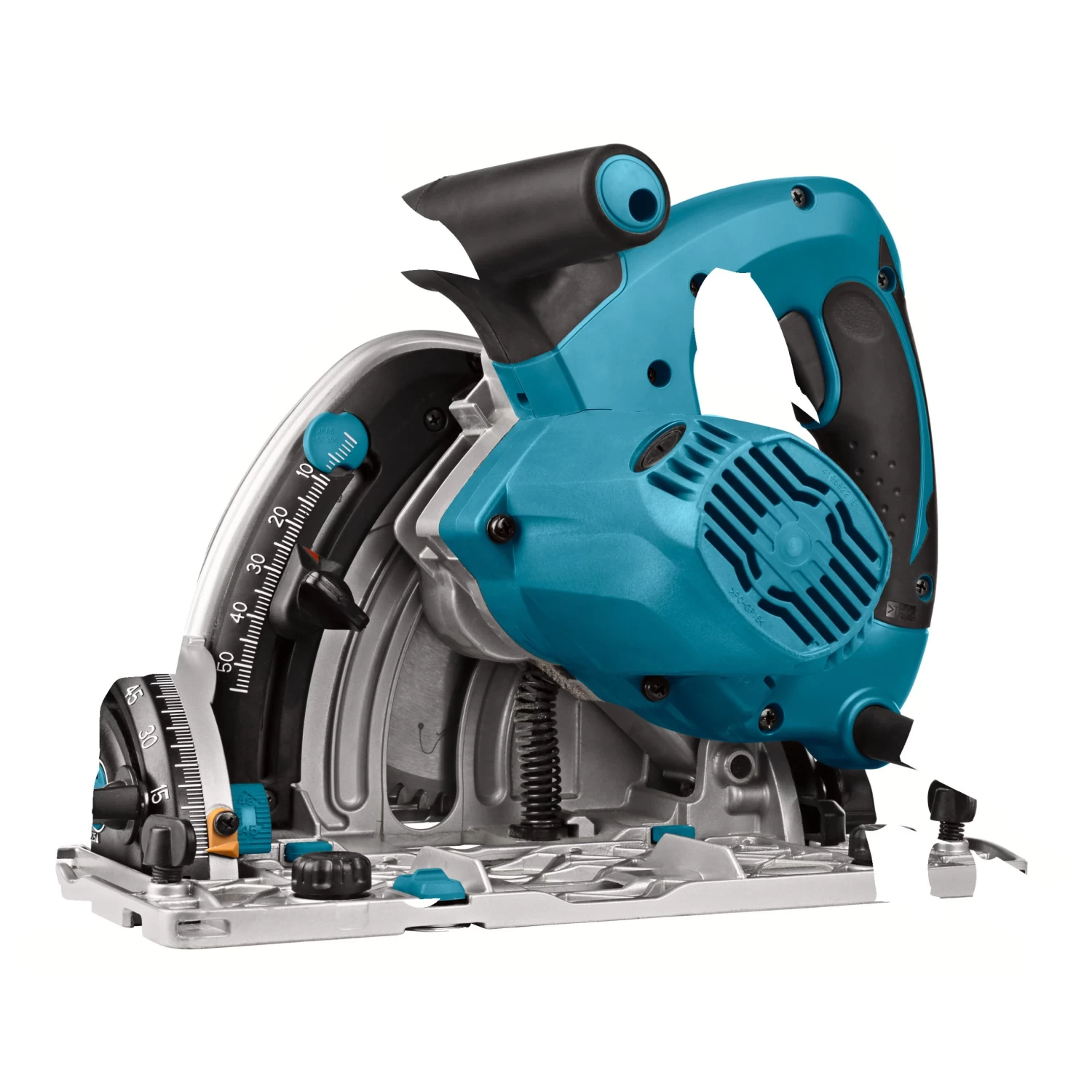 De Makita invalzaag SP6000J zaagt nauwkeurig in verschillende materialen. De Makita invalzaag SP6000J is een krachtige zaag voor de ervaren klusser. Ook geschikt voor het zagen van diverse materialen dankzij de variabele toerenregeling. Daardoor is het ideaal voor het nauwkeurig op maat zagen van plaatmaterialen, massieve houten panelen en voor het uitzagen van rechte uitsparingen. Het heeft een motor met een maximaal vermogen van wel 1300 Watt. De elektrische controller op de motor zorgt ervoor dat de machine een soft start heeft, een constant toerental en een regelbare snelheid. Door de constant instelbaar toerental kun je ook snel en zuiver zagen. Met behulp van de voorritsfunctie is het zagen ook nog eens splintervrij. Met de invalzaag kan je ook verstek zagen. De zaag is namelijk kantelbaar van –1 tot 48 graden. Met precieze aanslagen op de 0, 22,5 en 45 graden. De rail zorgt dat de zaag niet kantelt als die onder een hoek van 45 graden wordt gehanteerd (niet inbegrepen). Met de voorzaagfunctie zijn splinters verleden tijd. De zaag van Makita heeft een beschermkap en het zaagblad heeft een doornsnede van 165mm. Met de softgrip kan je de zaag fijn bedienen. De zaag heeft altijd dezelfde zaaglijn, maakt niet uit welke hoek. Daarnaast kun je ook dicht bij de muur zagen tot wel 18 mm van de muur af. De zaag heeft een snoerlengte van 4.0m en een stofzuigadapter waardoor je werkplek schoon blijft.