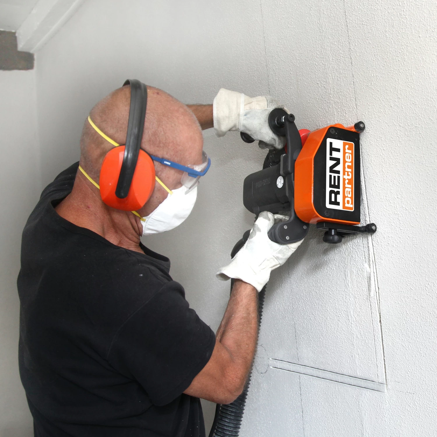 Met de muursleuvenzaag kan je eenvoudig rechte sleuven in harde steensoorten zagen. Je kan vervolgens met een sleuvenbeitel de sleuf vrij maken van steen of beton. Om stofontwikkeling te voorkomen wordt het aanbevolen om een stof- en waterzuiger aan te sluiten. De prijs van de muursleuvenzaag is inclusief slijtage van bijbehorend diamantblad. Voor veiligheid wordt aanbevolen: veiligheidshandschoenen, gehoorbescherming, oogbescherming en mondkap. Karwei werkt samen met RentPartner voor het verhuren van Gereedschap