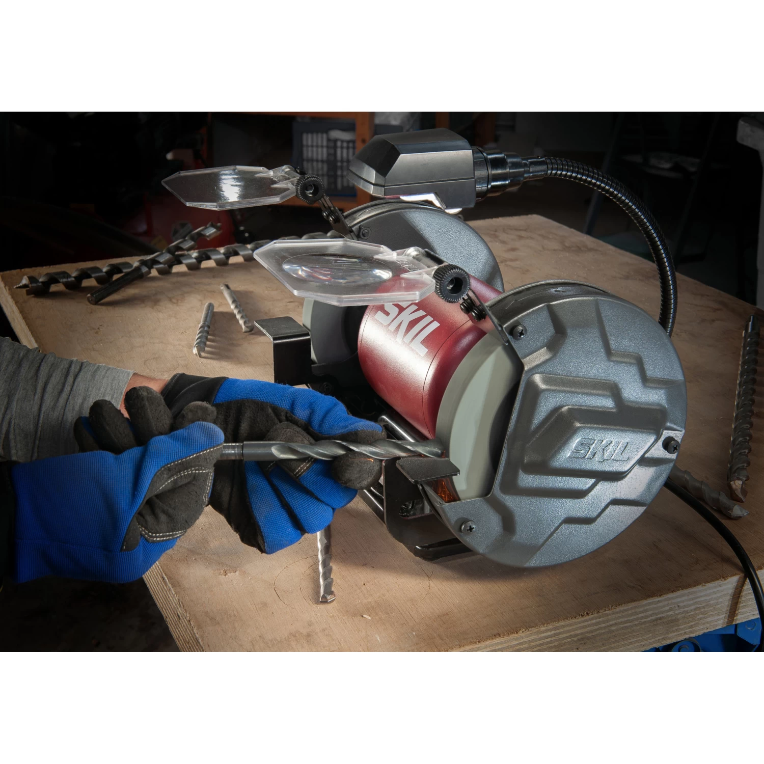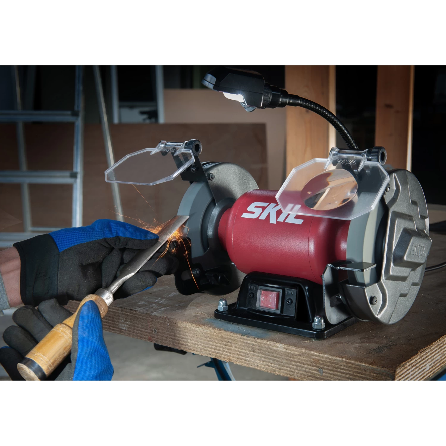 Slechte verlichting in je werkplaats? Geen probleem! Het flexibele LED-licht zorgt voor een optimaal zicht op je werkstuk. Ten slotte is de slijpmachine voorzien van stabiele, verstelbare machinesteunen en een stofdichte aan/uit-schakelaar. De SKIL 1355 AA wordt geleverd met 2 slijpschijven van 150 mm (korrel 36 en 60), oogbeschermkappen en verstelbare machinesteunen.