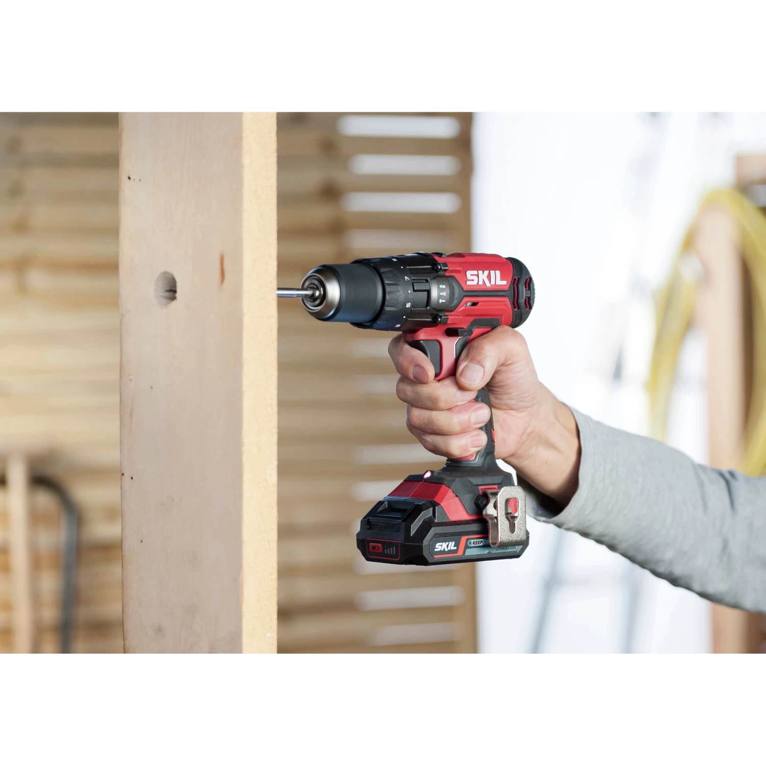 De „20V Max” (18 V) SKIL 3018 accu-klopboormachine met klopboorfunctie is bij uitstek geschikt voor boren in hout, metaal en zelfs metselwerk, en voor de zwaarste schroefklussen. De 17 koppelinstellingen garanderen nauwkeurige schroefresultaten. Dankzij de functieselector kunt u gemakkelijk schakelen tussen schroeven, boren en klopboren. Hij heeft twee snelheden, één voor snel boren en één voor zware boor- en schroefklussen. Dit gereedschap is voorzien van een 13 mm-snelspanboorkop met enkele bus en vergrendeling die voorkomt dat de bits kunnen slippen. Dankzij de automatische asvergrendeling kunnen accessoires gemakkelijk worden gewisseld. Kortom, dit veelzijdige gereedschap biedt echt alles wat u nodig hebt: betrouwbare Lithium-Ion accutechnologie, variabele snelheid voor volledige controle en een LED-lamp voor goede zichtbaarheid van uw werk. Bovendien is dit gereedschap voorzien van een handige links-rechtsindicatie via een LED-licht, zodat u onmiddellijk kunt zien in welke richting u schroeft. Tot slot zorgen het ergonomisch ontwerp en de softgrip voor extra comfort bij het werken. De gepatenteerde accuniveau-indicator geeft het laadniveau van de accu weer. De SKIL 3018 HD wordt geleverd in een draagkoffer met twee „20V Max” (18 V) 2,0 Ah „Keep Cool™”-accu’s, een oplader, 3 steenboren, een dubbelzijdig schroefbit en een ceintuurklem.