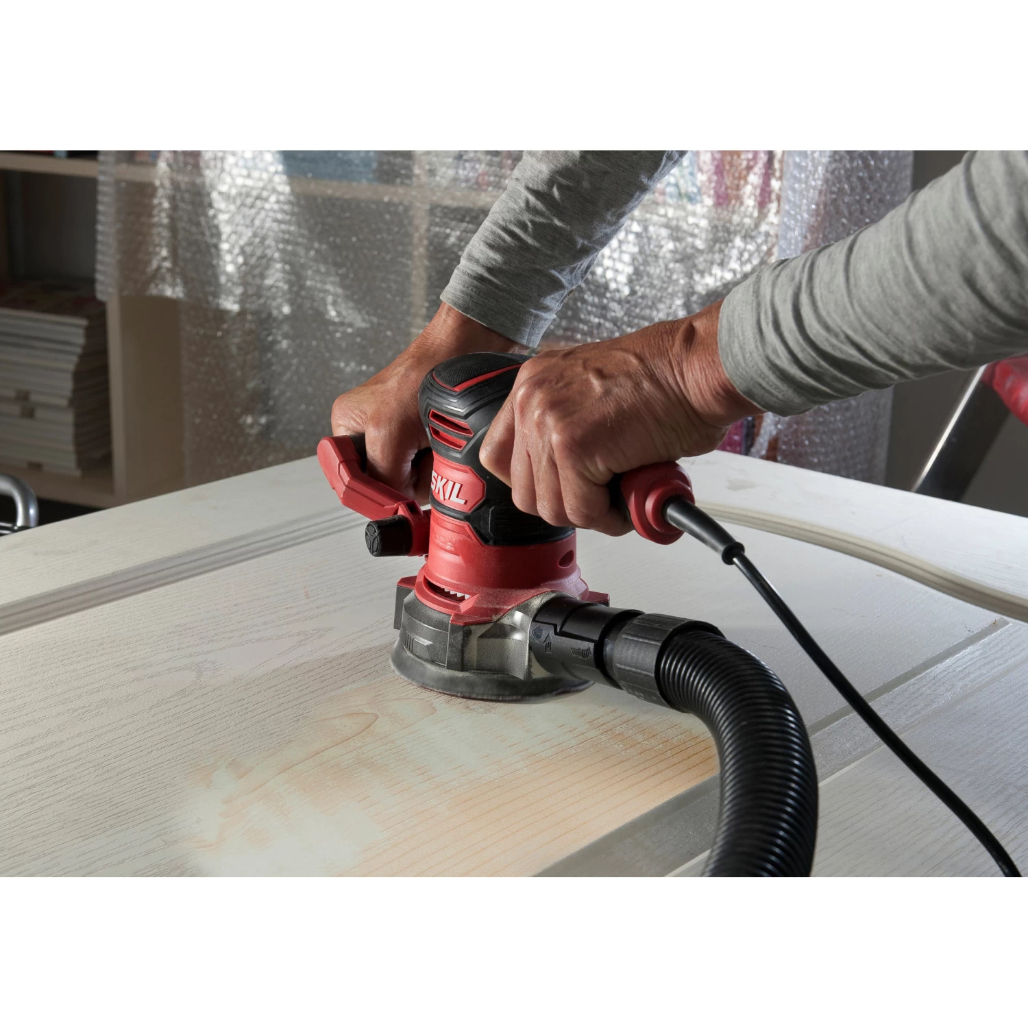 De krachtige 400W SKIL 7480 excentrische schuurmachine is jouw ideale partner voor het schuren van zowel vlakke als gebogen oppervlakken. Door haar efficiënte excentrische schuurbewegingen is de machine bij uitstek geschikt voor zowel fijn schuurwerk als afbramen. En dankzij de vooraf instelbare variabele snelheidsregeling kan de snelheid aan de klus worden aangepast. Dit gereedschap is voorzien van het gepatenteerde „X-Flow”-stofopvangsysteem dat stof van lucht scheidt zonder het gebruik van een filter. Het belangrijkste voordeel is dat er geen filter is dat verstopt kan raken, dit betekent dat de stofafzuiging steeds krachtig gehandhaafd blijft. Hierdoor kan er schoner gewerkt worden. Maar als je liever jouw stofzuiger wilt aansluiten, kan je ook de meegeleverde stofzuigeradapter gebruiken. De extra instelbare hendel biedt optimale controle tijdens de klus, en een balanceersysteem door middel van contragewichten „VRS” verbetert die controle nog meer doordat trillingen gereduceerd worden. De SKIL 7480 DA wordt geleverd in een draagtas, inclusief 15 vellen schuurpapier met klithechting, een instelbare hendel, „X-Flow”-stofcontainer en een stofzuigeradapter.